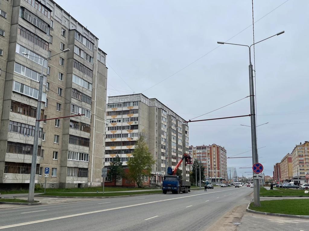 На бульваре Ураева в Йошкар-Оле приступили к монтажу контактной сети для троллейбусов.