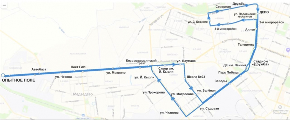 Исключаются остановки: ул. Рябинина, Ленинский проспект, Рынок, ДК 30-летия Победы, Школа № 7, ул. Пролетарская, Республиканская больница.