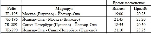 В расписание движения воздушных судов из Москвы и Йошкар-Олы внесены изменения.