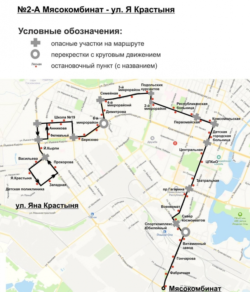 С 15 июля в Йошкар-Оле меняется маршрут движения автобуса № 2А «Ул. Я. Крастыня — мясокомбинат».