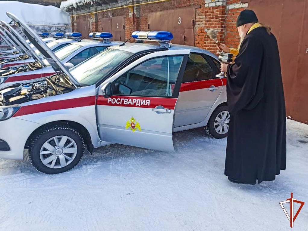 Перед заступлением на службу настоятель военного гарнизонного храма в честь преподобного Серафима Саровского, протоиерей Александр Бачурин освятил служебный автотранспорт.