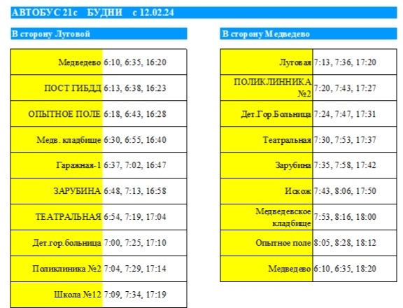 С 12 февраля в расписание движения автобусного маршрута № 21-с внесены изменения.