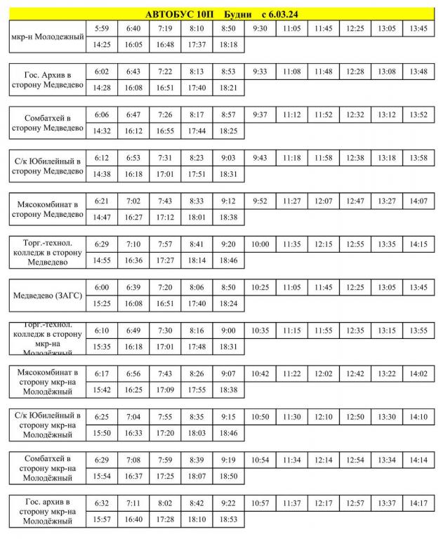 С учётом пожеланий пассажиров было скорректировано расписание движения автобусного маршрута № 10П.