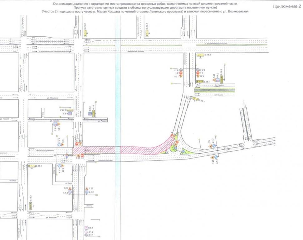Движение запретят на участке от кольцевого пересечения с улицей Эшкинина до улицы Вознесенской (включая перекрёсток с ул. Вознесенской).