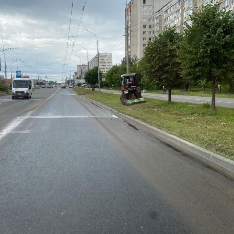 Параллельно с этим не останавливается работа по благоустройству. На придорожных территориях по улицам Йывана Кырли, Машиностроителей, бульваре Чавайна, Кирова косят траву. С дорог убирают пескосмёт, прибирают тротуары.