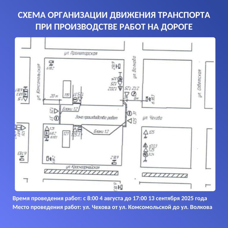 Движение ограничат с 8:00 4 августа на участке от улицы Комсомольской до улицы Волкова.