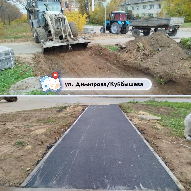 На Сернурском тракте, 4 заасфальтировали остановочную площадку. На улицах Димитрова-Куйбышева благоустроили пешеходную дорожку.
