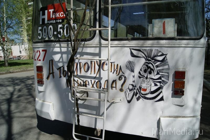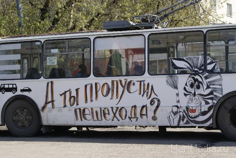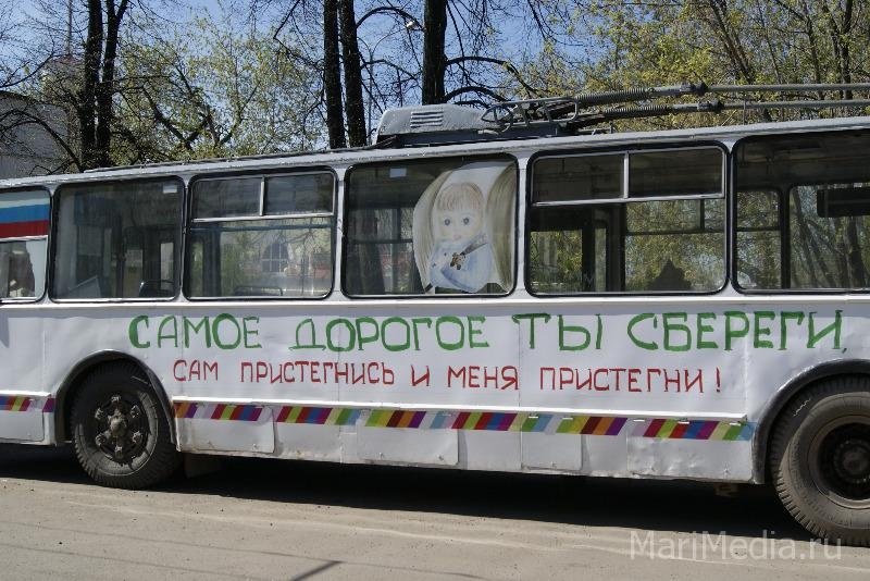 На корпусах 12-метровых машин размещена социальная реклама по безопасности дорожного движения. Рекламные материалы нарисованы не профессиональными художниками, а обычными ребятами из йошкар-олинских школ. Проблемы, затронутые детьми в работах, очень актуальны на сегодняшний день. В городе с начала года произошло семь дорожно-транспортных происшествий с участием несовершеннолетних и все они - по вине водителей. Столичная Госавтоинспекция при поддержке администрации города помогла школьникам донести эти проблемы до всех участников дорожного движения.