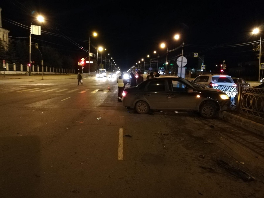 В 19:35 на улице Красноармейской водитель «ВАЗ-2190» выехал на регулируемый светофорами перекресток на запрещающий красный сигнал светофора и врезался в Kia Rio, водитель которой совершал разворот, с последующим наездом на металлическое ограждение разделительной полосы проезжей части. Молодой человек — пассажир ВАЗа — госпитализирован.