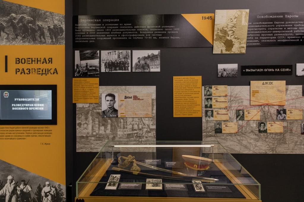 Пользователи «побывают» в экспозиции, посвященной более чем 100-летней истории ведомства. Здесь представлено свыше 200 подлинных экспонатов. Гид расскажет, как в молодой советской республике была создана военная разведка, кто был её первым руководителем, какие задачи ставили перед сотрудниками.