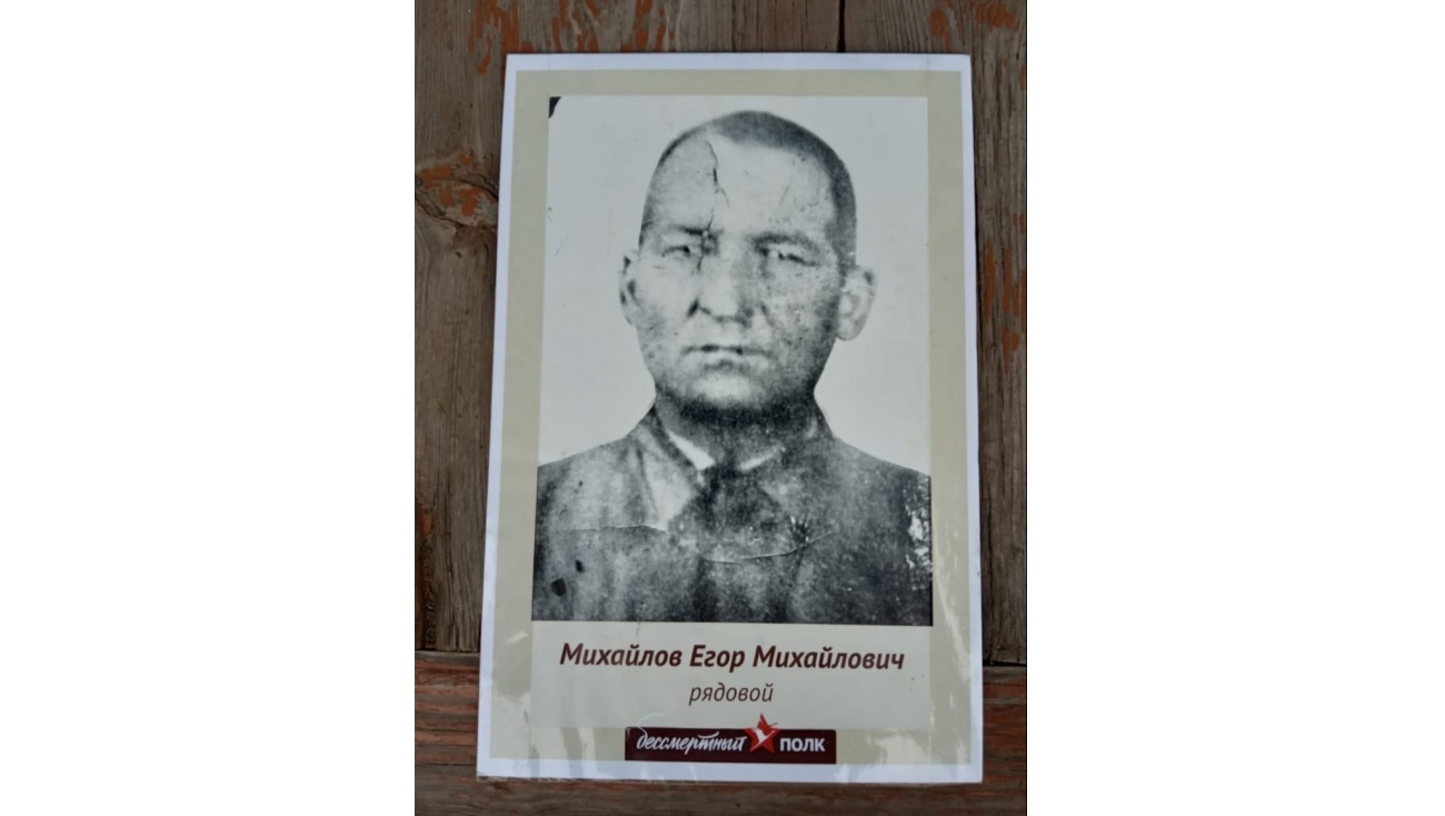 Я хочу рассказать о своём прадедушке, простом солдате, ушедшем на фронт в начале войны. Когда она началась, Михайлов Егор Михайлович жил в деревне Акулево Хыркачинского района Чувашской АССР, ему было 39 лет. Ушёл на фронт добровольцем, чтобы защищать свою семью. Дома осталась его жена и восемь детей, трое из которых не пережили тяготы войны.