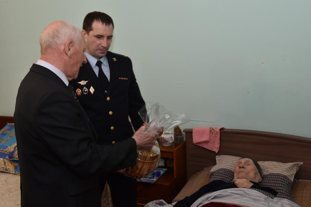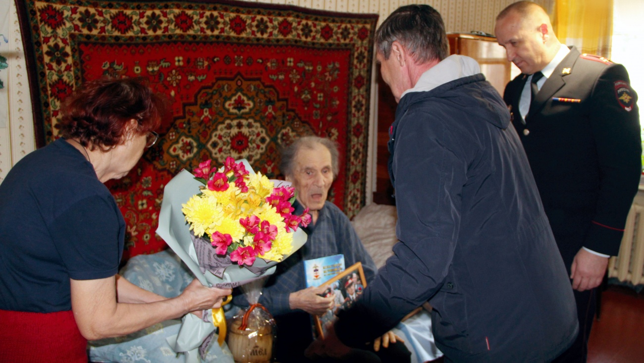 Гости поздравили ветерана с наступающим праздником Победы, подарили цветы и ценный подарок, пожелали здоровья и долгих лет жизни. Константин Карпов отметил, что поколение, пережившее все тяготы и невзгоды тяжелейшего времени, является примером для нынешней молодёжи.