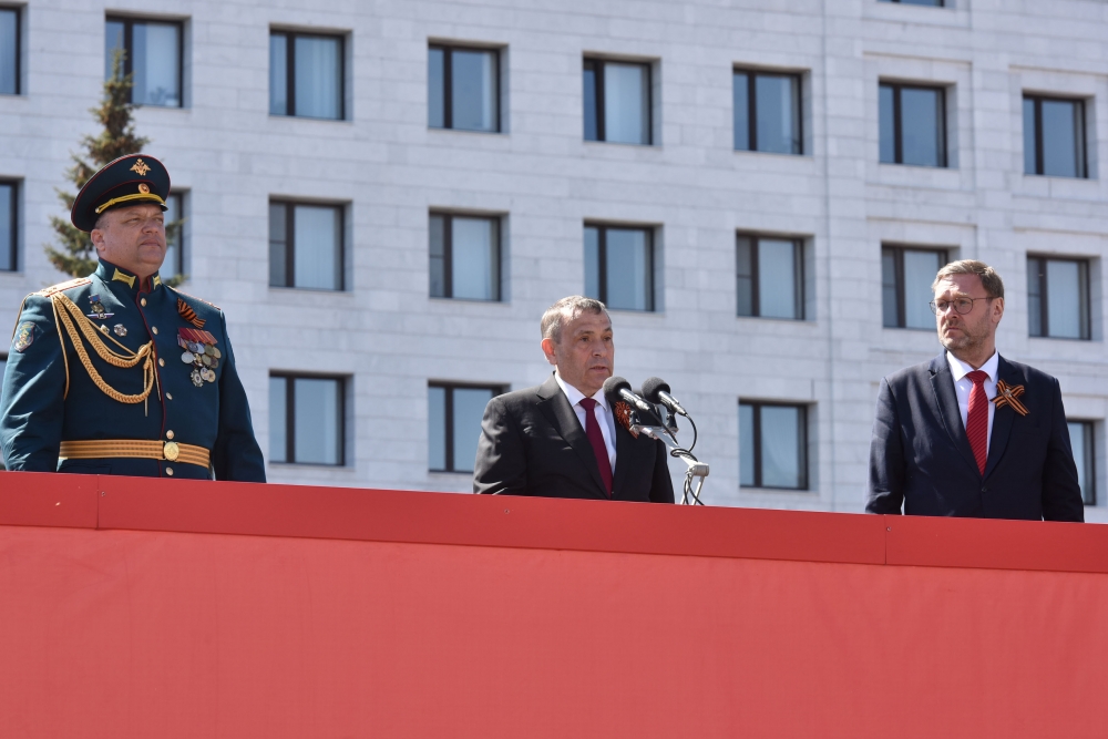 Александр Евстифеев, приветствуя военнослужащих, участников Парада, жителей и гостей региона, отметил, что День Победы – праздник национальной гордости, символ беспрецедентного героизма и беззаветной верности Отчизне.
