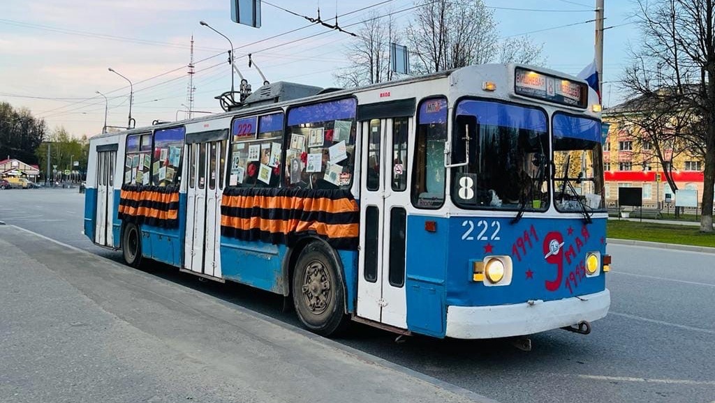 Сами машины украшены георгиевскими лентами, в салонах — детские рисунки на военную тематику и портреты участников Великой Отечественной войны. Троллейбусы ходят по маршруту № 8, уточнили в мэрии города.