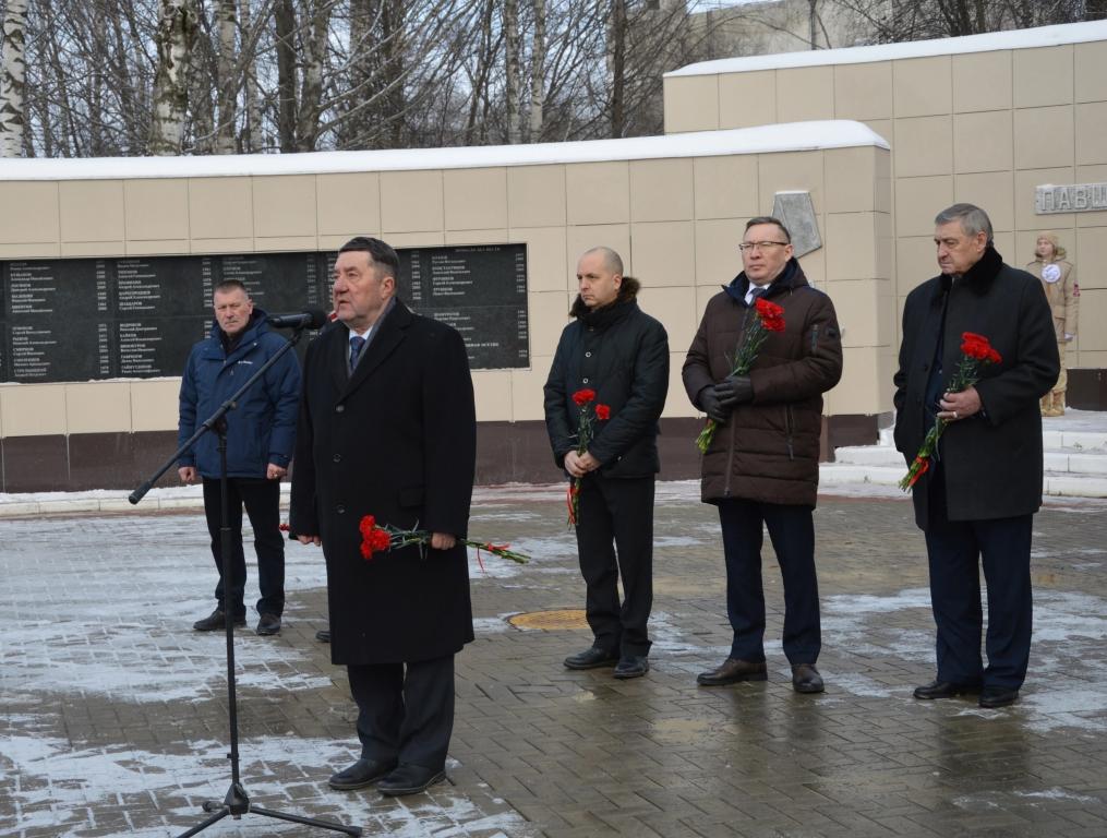 Присутствующие почтили память погибших минутой молчания и возложили цветы к стеле «Павшим воинам посвящается».
