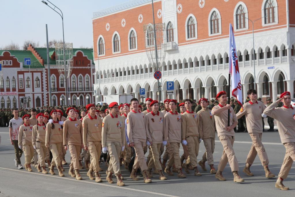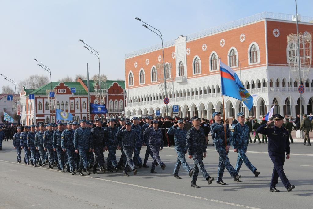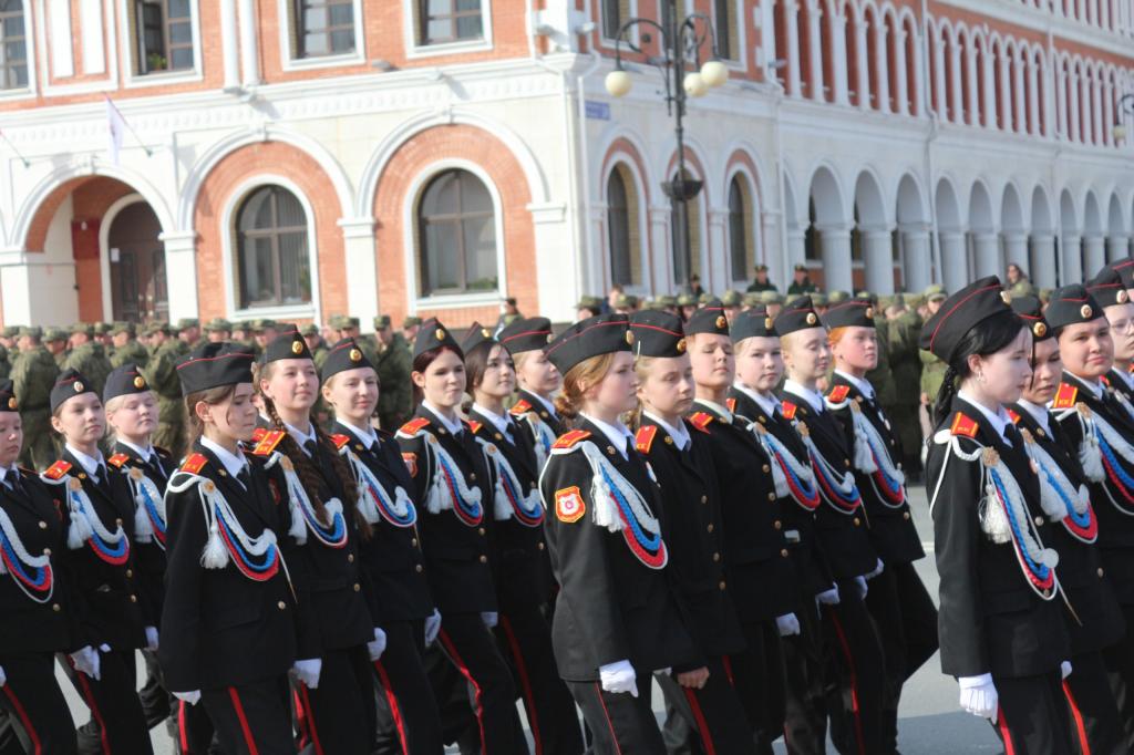 В Йошкар-Оле начались репетиции Парада Победы. Накануне на первой совместной тренировке в строю прошли военнослужащие, силовые структуры, учащиеся кадетских классов.