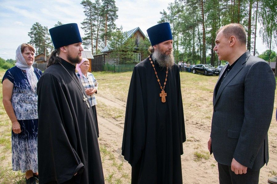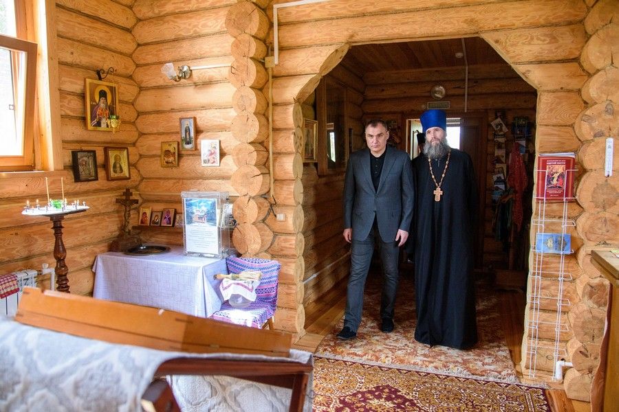 После возложения цветов к памятнику Юрий Зайцев пообщался со священнослужителями и посетил возведённый шесть лет назад в посёлке храм во имя Архистратига Божия Михаила.