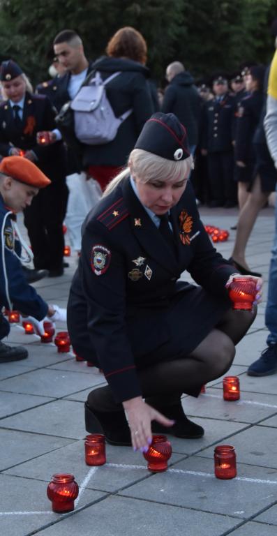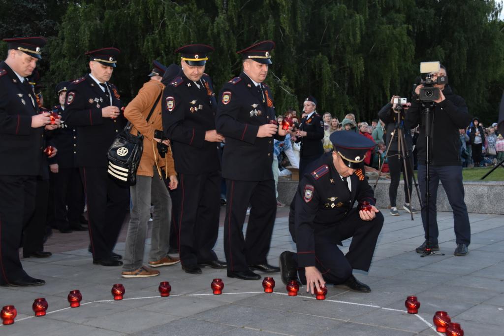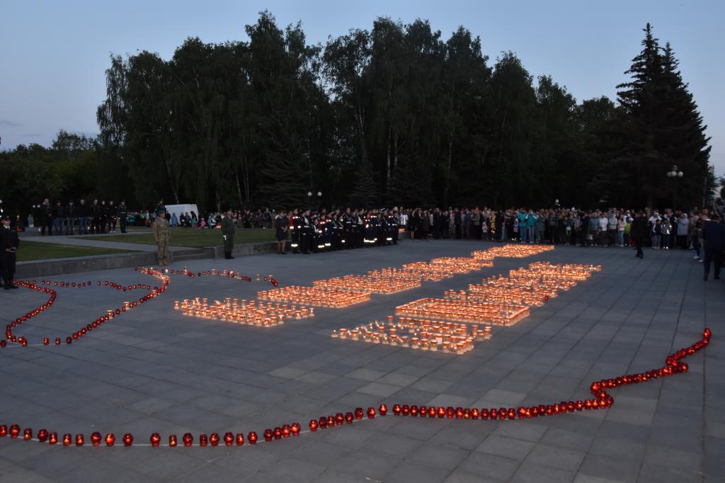 Участники акции зажгли свечи, символизирующие дни и ночи боев, поражений и побед, и выложили ими слово «ЙОШКАР-ОЛА ПОМНИТ», а также силуэт голубя Мира. Все присутствующие почтили память павших в годы войны минутой молчания.