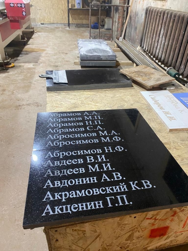 Сейчас 20-метровая стела обелиска Славы обкладывается керамогранитными плитами. Рабочие завершают облицовку основания, где позже закрепят плиты со списками земляков, павших на полях сражений ВОВ.