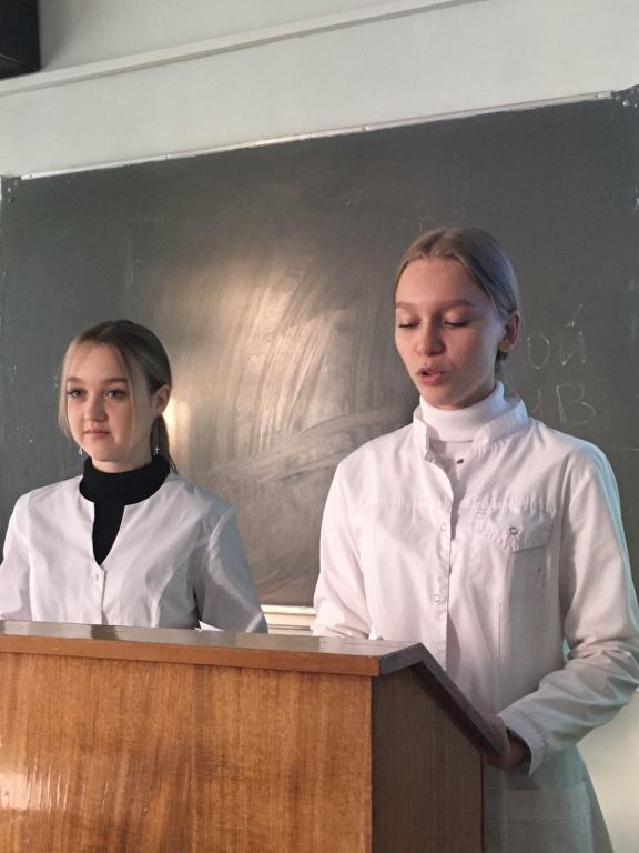 Среди выступлений присутствующим особенно запомнился инсценированный доклад, посвящённый 80-летию снятия блокады Ленинграда. Студентки медколледжа Елизавета Фалалеева и Софья Степанова рассказали о трагических моментах, описанных в дневнике Тани Савичевой.
