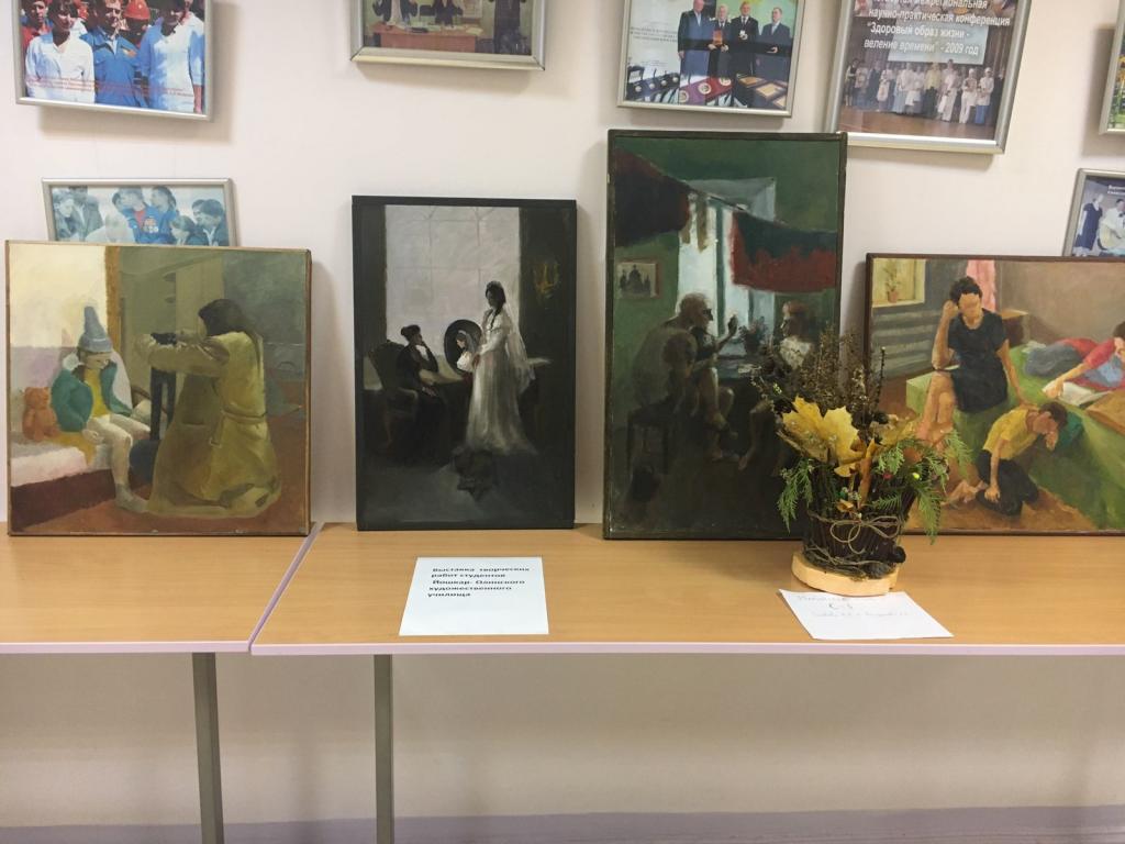 Студенты Йошкар-Олинского художественного училища представили 19 работ по военной тематике, а студенты медколледжа показали шерстяные носки, которые они вяжут для бойцов СВО.