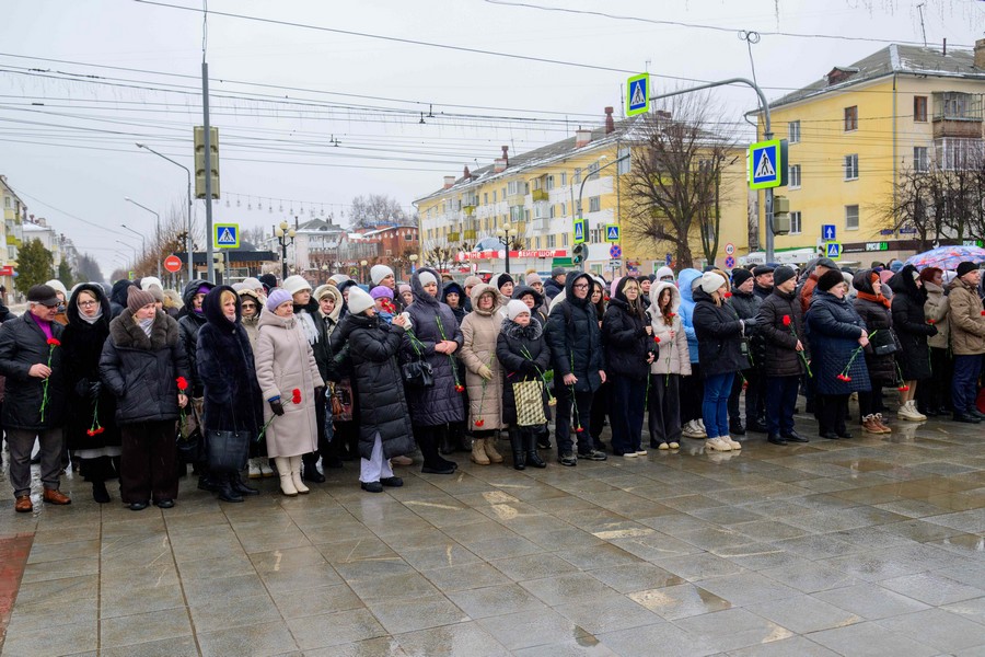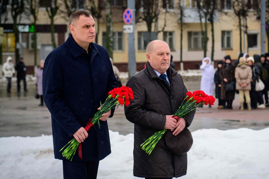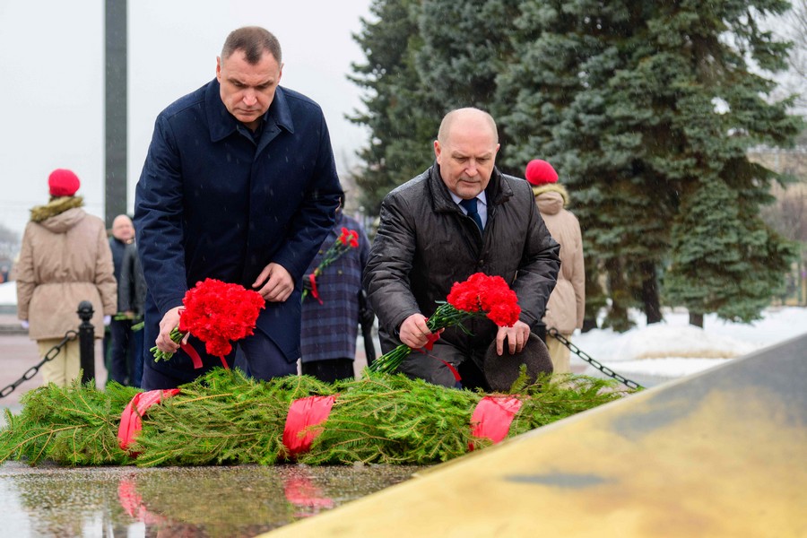 Под звуки троекратного оружейного залпа участники почтили память погибших героев минутой молчания.