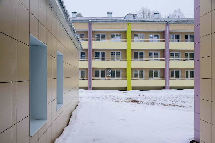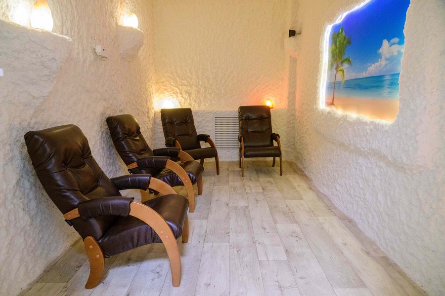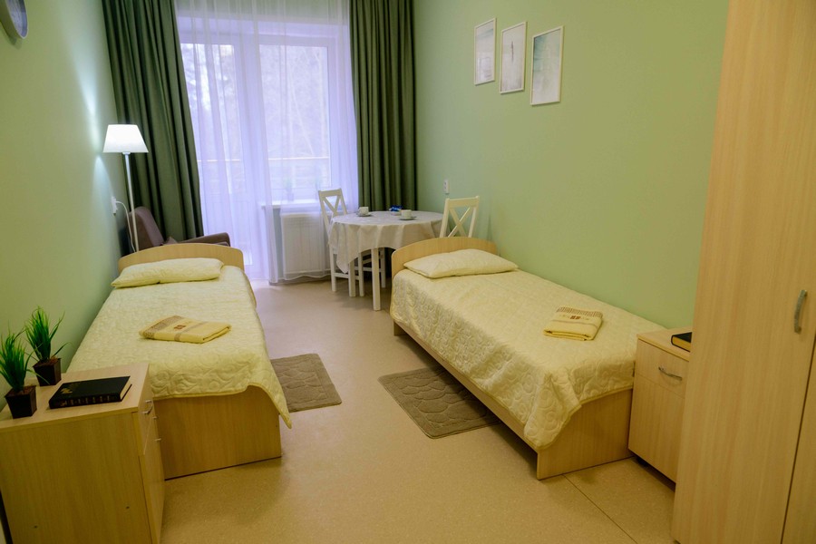 В холлах интерната созданы зоны для досуга и отдыха: бильярд, караоке, шахматы, зона отдыха с камином и аквариумом, а также мини-кафе. На первом этаже оборудованы кабинет психолога, галокамера, физиокабинет, зал лечебной физкультуры и творческая мастерская.