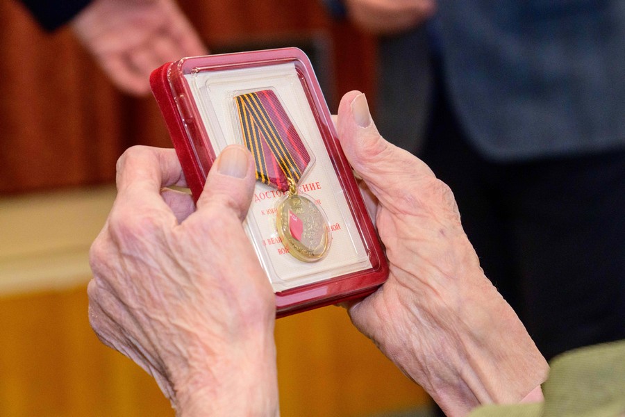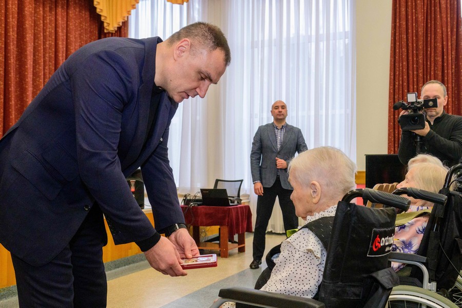 «Мы приехали, прежде всего, проведать вас. Я знаю, что каждая из вас — ветеран труда, человек который много сил отдал во благо нашей страны, нашей Родины. Я хотел бы вам вручить медали в честь 80-летия великой Победы. От всего Правительства и от себя лично хочу пожелать вам крепкого здоровья», — сказал он.