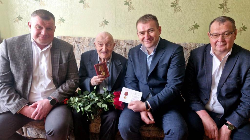 В знак глубокого уважения и благодарности за мужество и стойкость Ивану Трофимовичу вручили юбилейную медаль «80 лет Победы в Великой Отечественной войне 1941–1945 годов», а также памятные подарки.