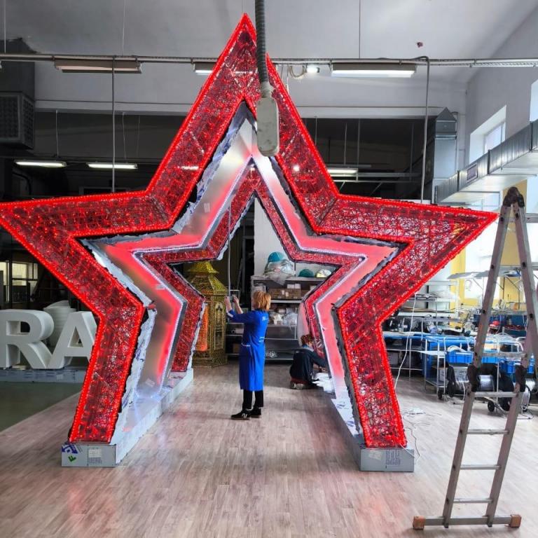 На кольцевом перекрёстке ул. Карла Либкнехта и ул. Лебедева устанавливают световую арку в форме звезды.