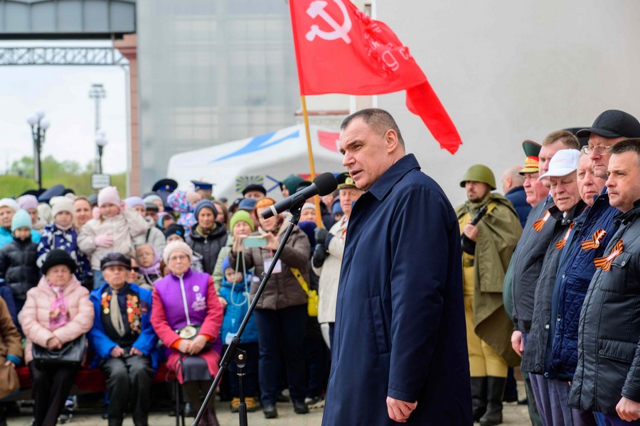 На церемонии в Йошкар-Оле присутствовал также замначальника Горьковской железной дороги Сергей Шагалов. Он обратился к ветеранам и участникам СВО и поздравил с наступающим Днём Победы.
