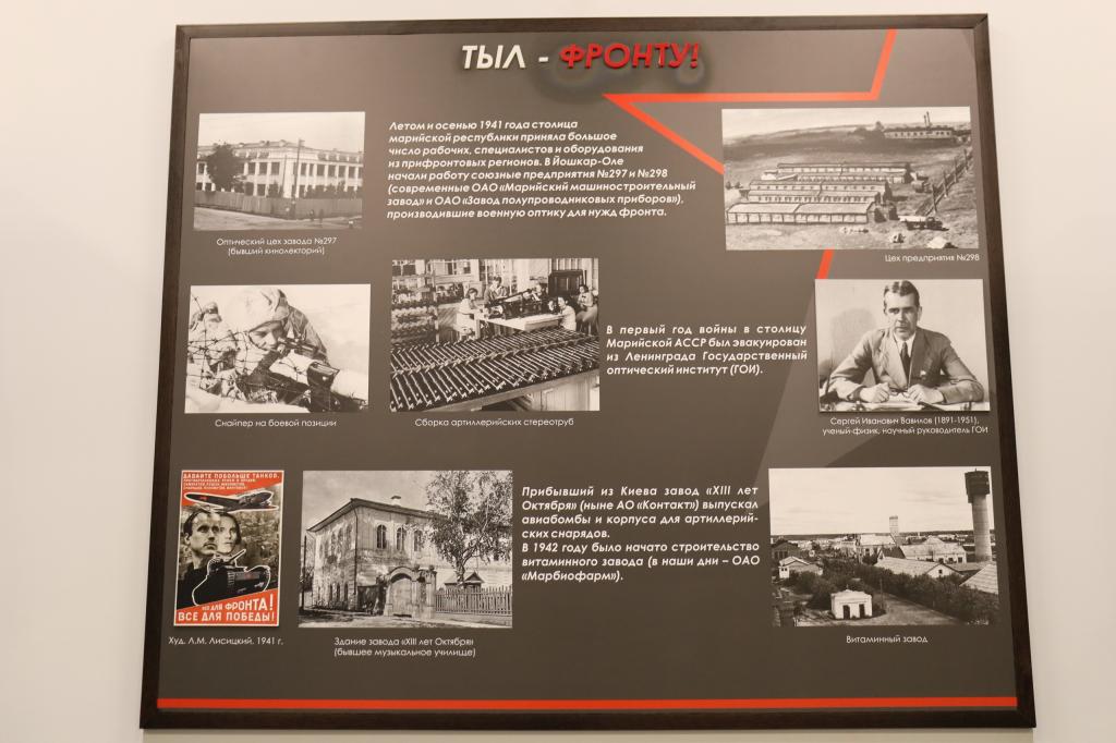 В отделе воинской славы при Музее истории города Йошкар-Олы открылась обновлённая выставка «Великая Отечественная война в летописи нашего города». Экспозиция поделена на две тематические части — фронт и тыл.