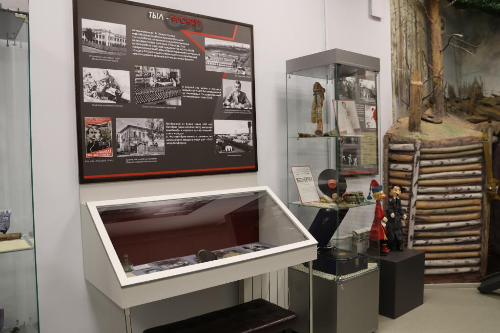 Посетители могут увидеть здесь образцы снарядов, военной оптики и бытовых приборов. Также представлен обширный фото- и документальный материал, личные вещи и награды фронтовиков, которые свидетельствуют о героических подвигах солдат в годы Великой Отечественной войны.