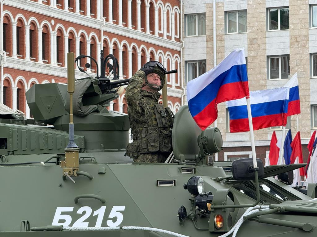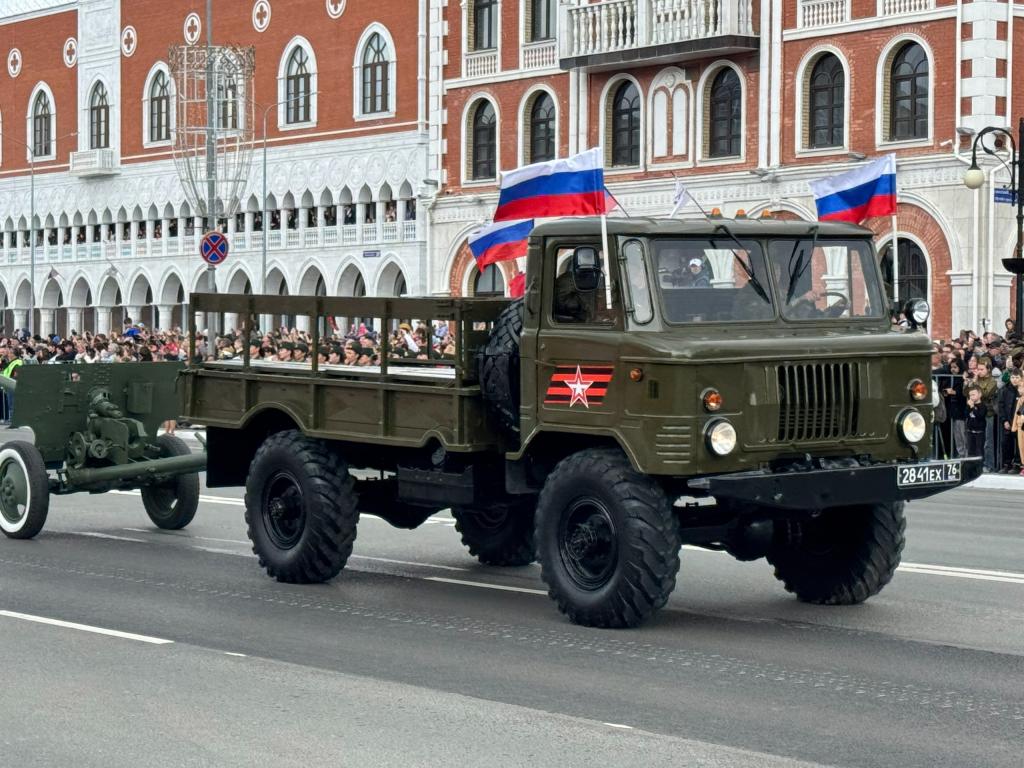 В парадный расчёт в Йошкар-Оле традиционно была включена и механизированная колонна. Это одна из самых зрелищных частей торжественного шествия.