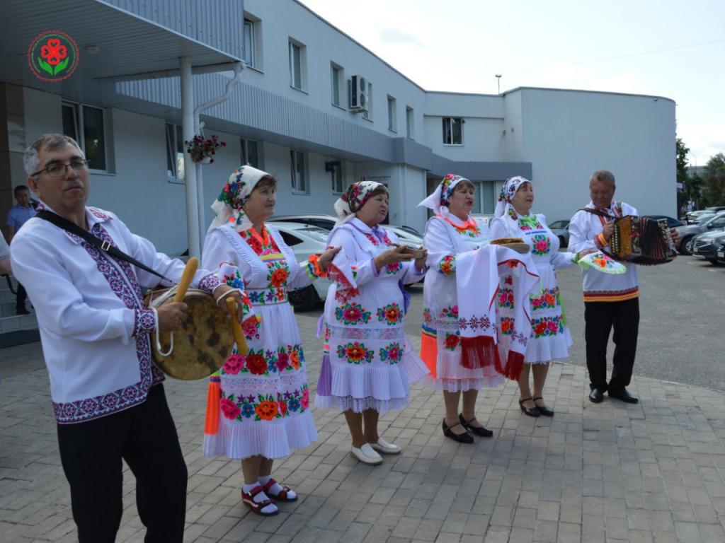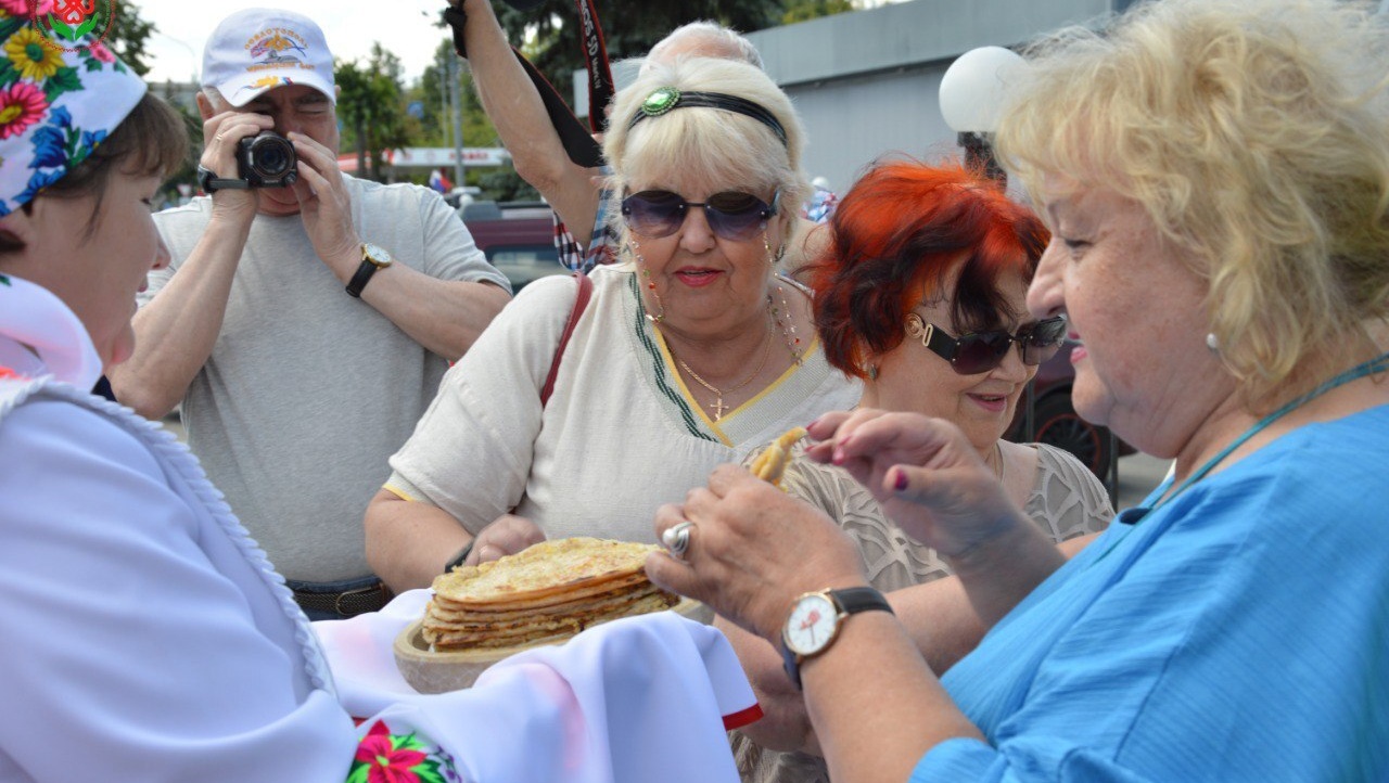 В Йошкар-Оле делегацию из 31 человека встретили марийскими национальными блинами и квасом, песнями и танцами.
