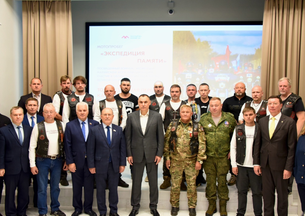 Председатель Государственного Собрания Марий Эл Михаил Васютин принял участие в церемонии передачи капсулы с землей с места проведения боев во время Великой Отечественной войны в Ленинградской области, которую привезли участники специального мотопробега.