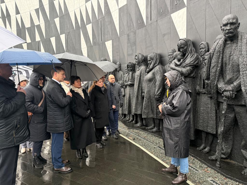 На Гатчинской земле чиновники из нашей республики побывали на Мемориале в деревне Зайцево, посвящённого памяти мирных жителей СССР — жертвам нацистского геноцида в годы Великой Отечественной войны. Вместе с главой администрации округа Людмилой Нещадим они возложили цветы к Вечному огню, отдав дань памяти невинным жертвам.