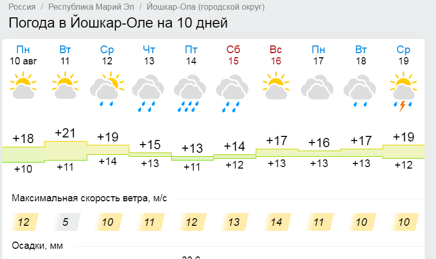 В Марий Эл на этой неделе столбики термометров опустятся до +13ºС