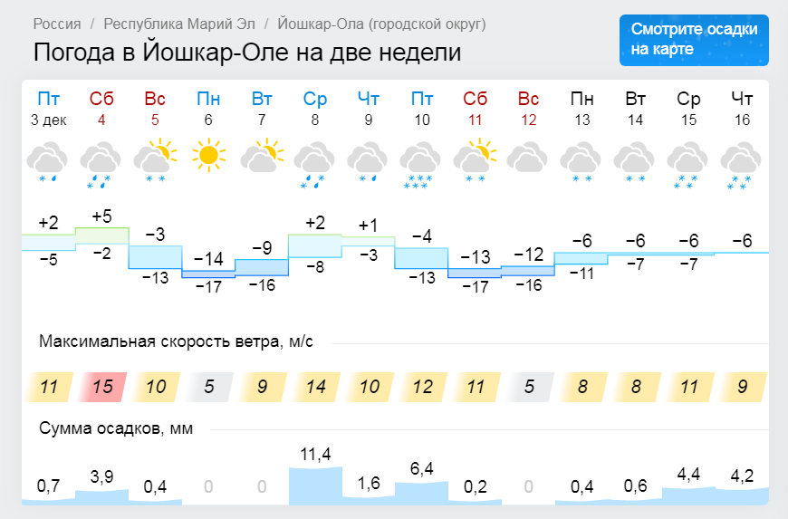 В первые выходные декабря в Марий Эл выпадет долгожданный снег
