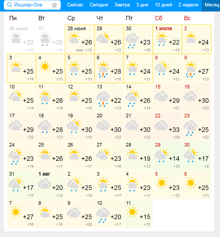 Июль в Марий Эл начнётся с грозовых дождей