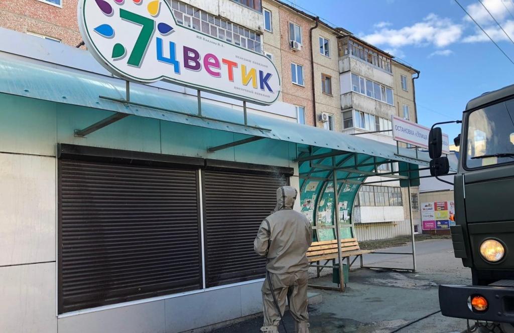К дезинфекции городских улиц привлечена военная техника.