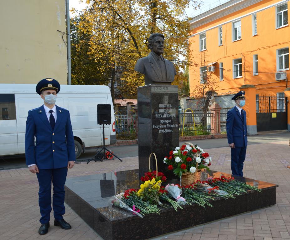 Сегодня в Йошкар-Оле в торжественной обстановке был открыт памятник-бюст следователю с большой буквы Николаю Михайловичу Пиксаеву. На церемонии открытия присутствовали его коллеги, ветераны прокуратуры, мэр Йошкар-Олы Евгений Маслов, в качестве почётных гостей — жена Галина Андреевна и дети: дочь Ольга и сын Сергей. Памятник открыт напротив здания прокуратуры города Йошкар-Олы.