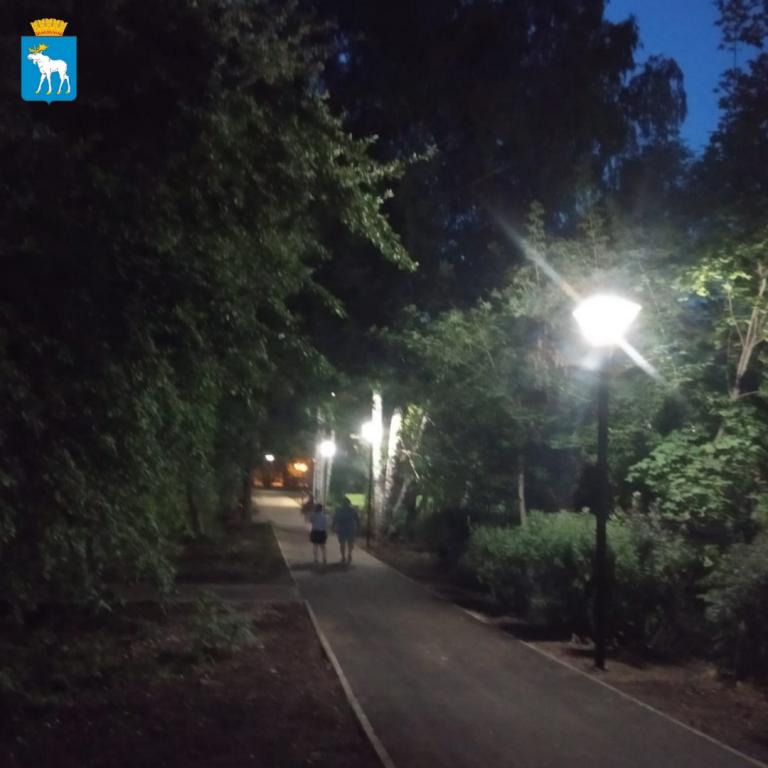 Как сообщили в мэрии города, в юго-западной части ЦПКиО было установлено 36 опор освещения, на которые смонтировали современные светодиодные светильники.