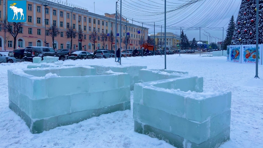 На площадь им. В.И. Ленина завезли ледяные блоки для изготовления фигур.