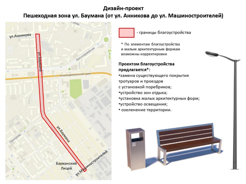 Среди мест, которые были предложены горожанами, — пешеходная зона ул. Баумана: от ул. Анникова до ул. Машиностроителей.