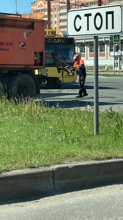 Дорожники проводят здесь ремонт большими «картами». Сначала их фрезеруют, а затем укладывают новый слой асфальтобетонной смеси.