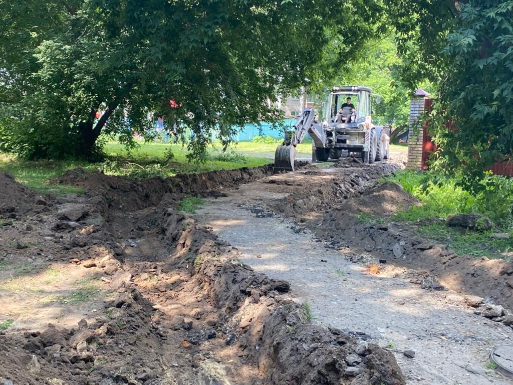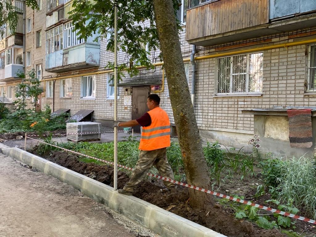 На начальной стадии устанавливают бортовые камни, затем будет проведено устройство дорожного покрытия проездов и тротуара, а также выполнены работы по благоустройству.