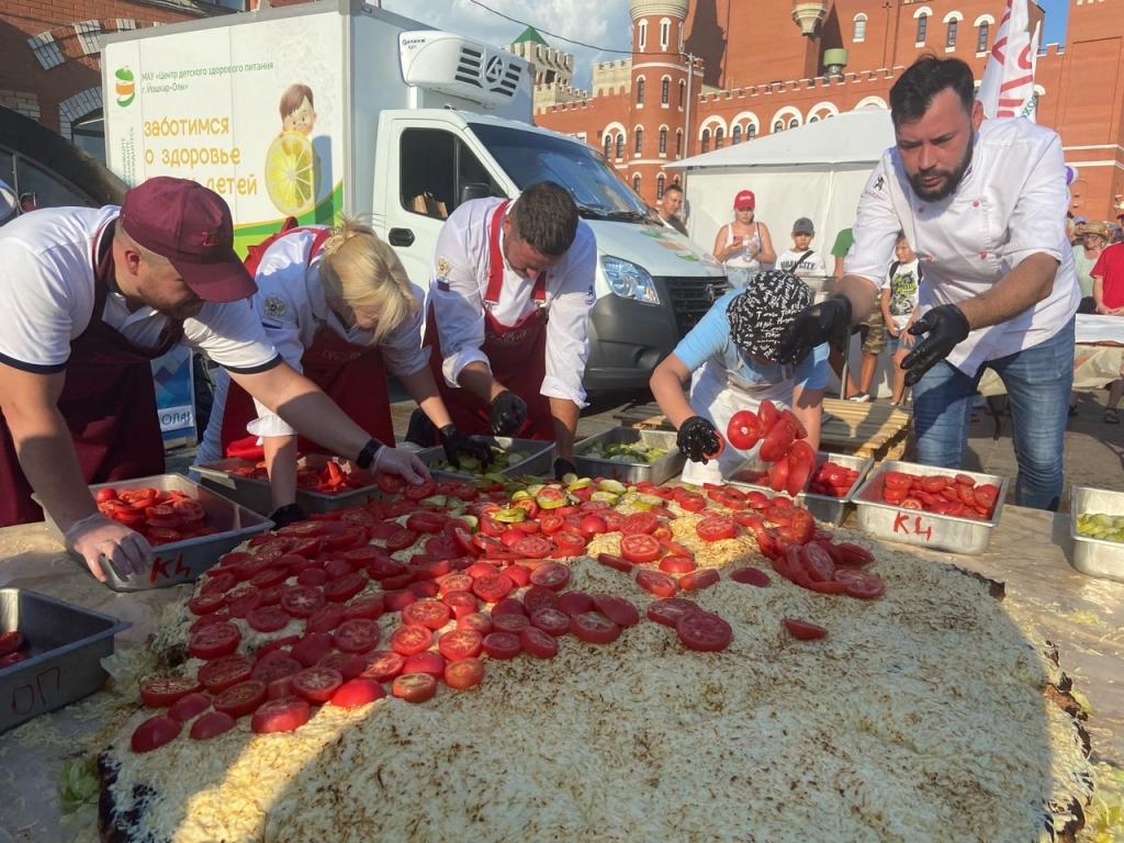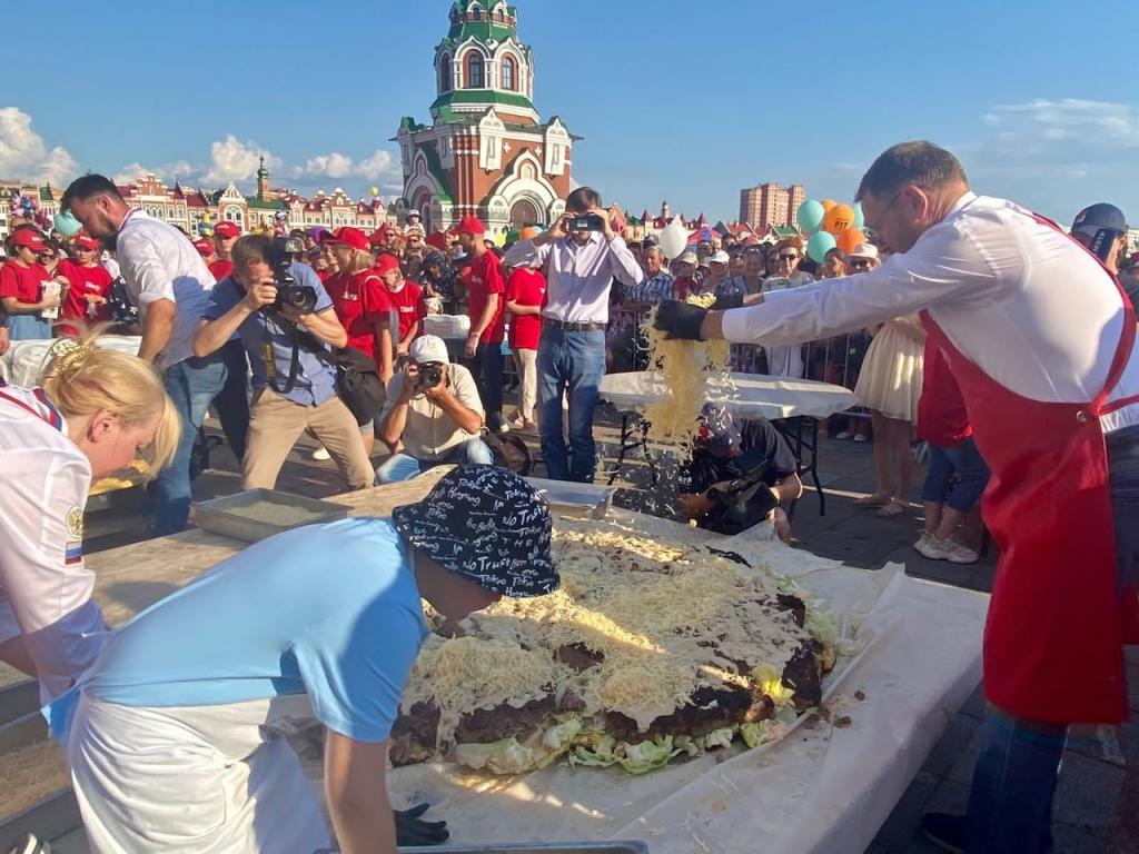 «Огурцы, помидоры, фарш, бекон, сыр и многое другое привезли ранним утром на площадь, чтобы установить новый вкусный рекорд — приготовить бургер весом до тонны», — сообщает пресс-служба мэрии Йошкар-Олы.