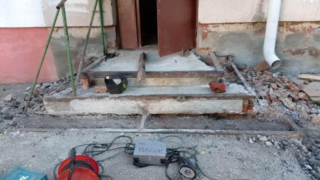 В работу по наведению порядка активно включились и управляющие компании. Они занимаются крыльцом, усиливают кромки ступеней металлическим уголком и ремонтируют кровлю схода в подвал.