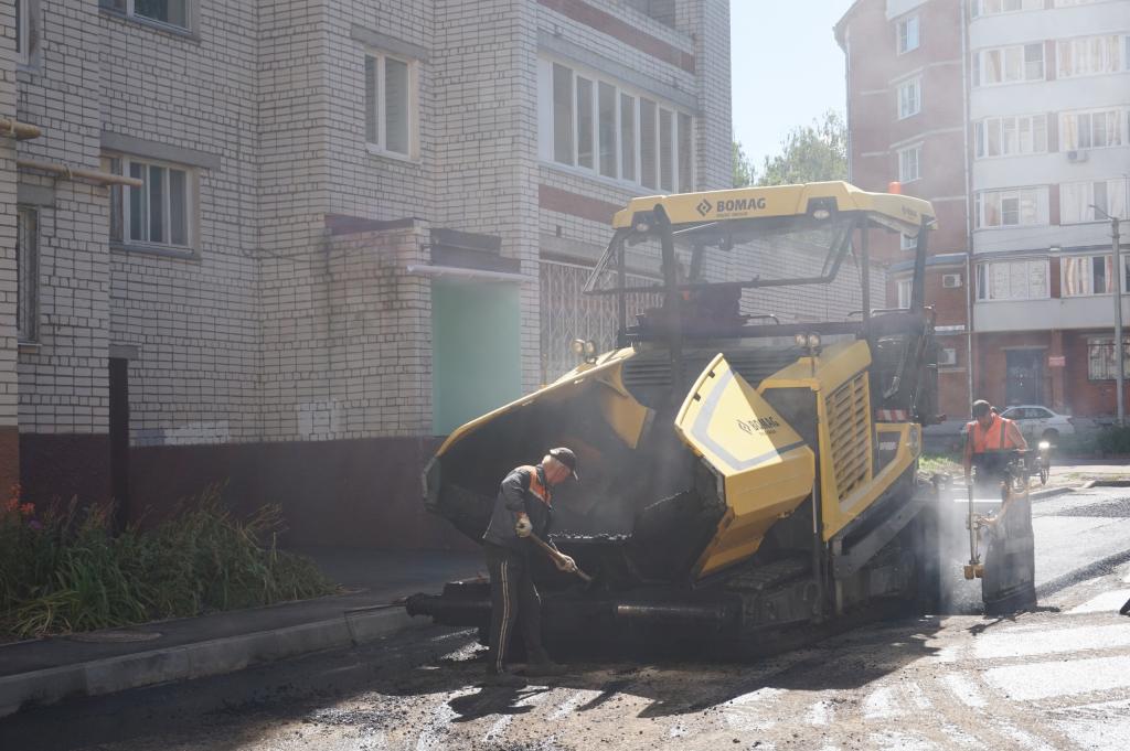 Здесь сотрудники МУП «Город» укладывают новый асфальт.